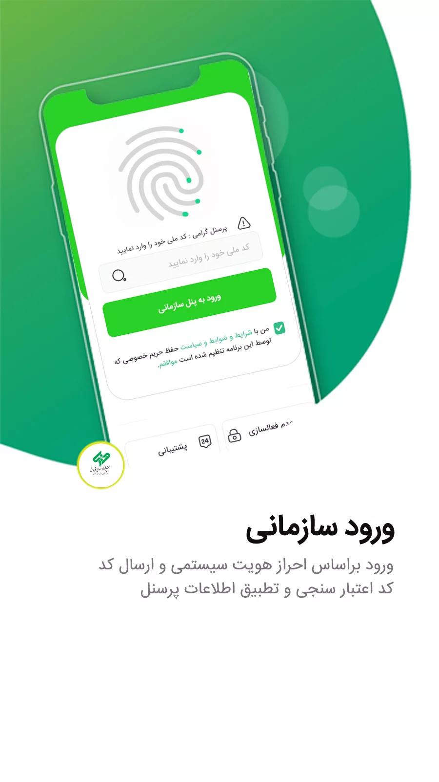 نحوه احراز پرسنل در این اپلیکیشن براساس کد ملی و شماره همراه ثبت شده در منابع انسانی در زمان استخدام می باشد،در صـورت سه بار اشــــتباه وارد کردن کد احراز پنل مسدود خواهد شد ،هر کاربر فقـــط بر روی یک دستـــگاه قادر به نصب اپلیکیشن می باشد.قابلیت ایجاد پنل میهمان و اعتبار پنل در هر دوره از قراداد پرسنل و تفکیک شاغل و بازنشته نیز وجو دارد.